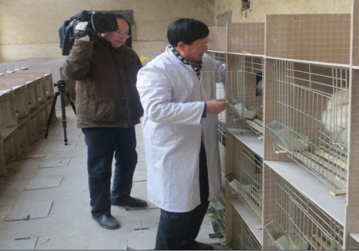 “振興長毛兔生產研討培訓會”在我場培訓人工授精現場